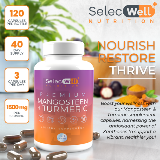 SelecWell Mangosteen + Turmeric Capsules 120 Veggie Capsules, 1500mg per Serving | Potent Antioxidants Support Supplement